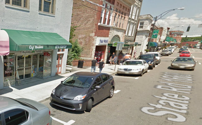 The drizzle had stopped, the skies were still overcast, and the sidewalk wet. It would have been impossible for her to miss the action fifty feet ahead of her.
